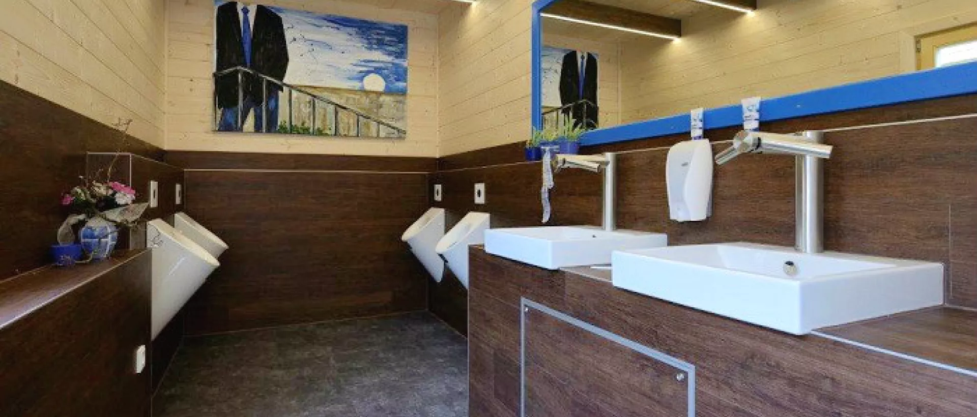 neben Zelt, Zapfanlage und Gläsern sowie der Getränkelieferung wird auch der WC-Anhänger von Olper vermietet.