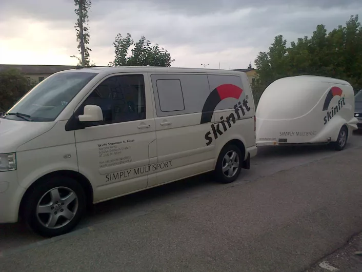 Kaum verwunderlich, dass Skinfit auch beim Transport ihrer Sportbekleidung nicht ein 0-8-15-Fahrzeug, sondern einen stylischen Anhänger im klassischen Design wählt.
