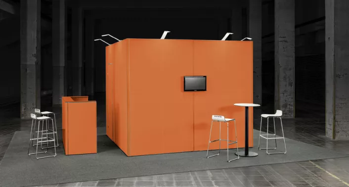 das patentierte all-in-one-System beinhaltet alle Komponenten für den Aufbau von Messeständen oder Präsentationsflächen von 3 - 40 m2.