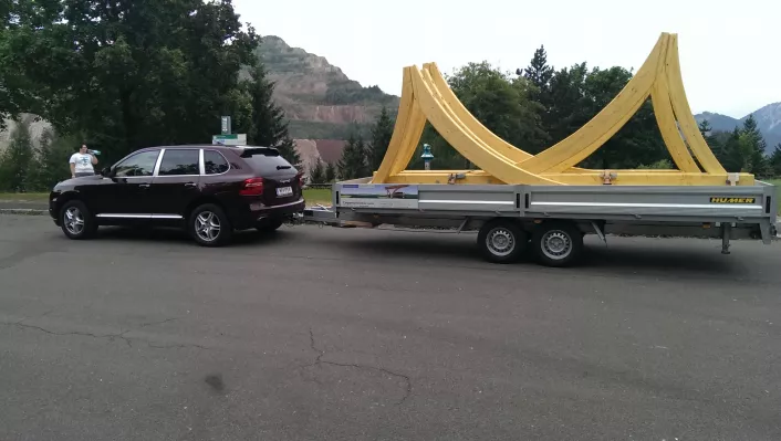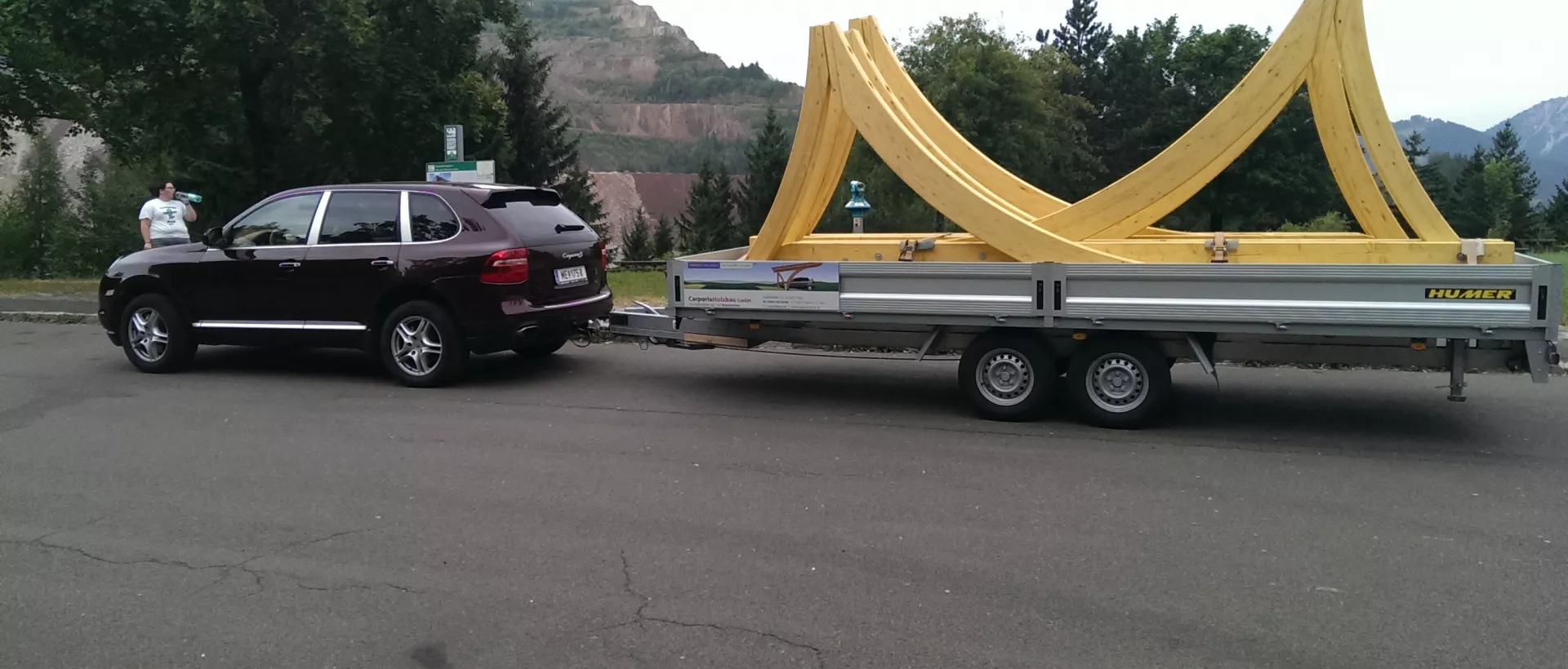 Zum Tranpsort der oft überlangen, sperrigen Einzelteile eignet sich der HUMER-Pritschenhochlader bestens.