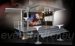 Bühnenact. Roadshow. Lounge. Verkaufsbereich. Messestand. VIP-Area. Modulbox auf Rädern. Guerilla Marketing - Aktionen.