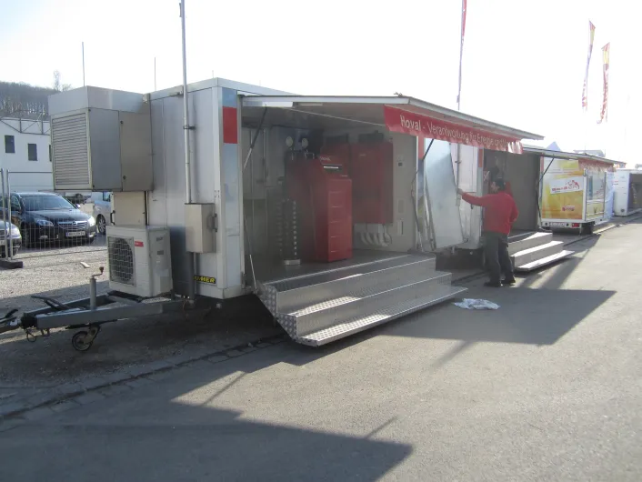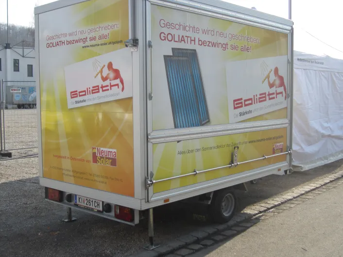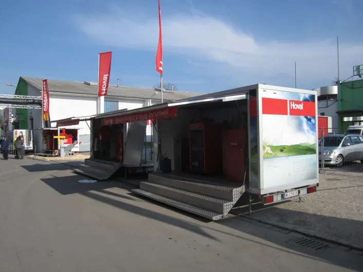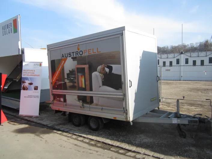 Am Mesegelände sind die Promotion-Fahrzeuge aus dem Hause HUMER stark vertreten.