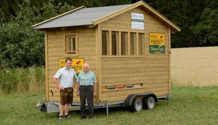 Auf Anregung eines erfahrenen Imkers aus Offenhausen, Karl Bichlmann (89), der seit seiner Jugendzeit die Imkerei mit großer Leidenschaft betreibt, baut Silber Holz Norbert Silber e.U. neu mobile Bienenhütten. Mit Maßen von 4 x 2 m (plus Dachvorsprung und Deichsel) bietet die Mobile Bienenhütte Platz für 5 bis 10 Bienenstock-Magazine innen sowie für zusätzliche 5 Magazine zum Transport.