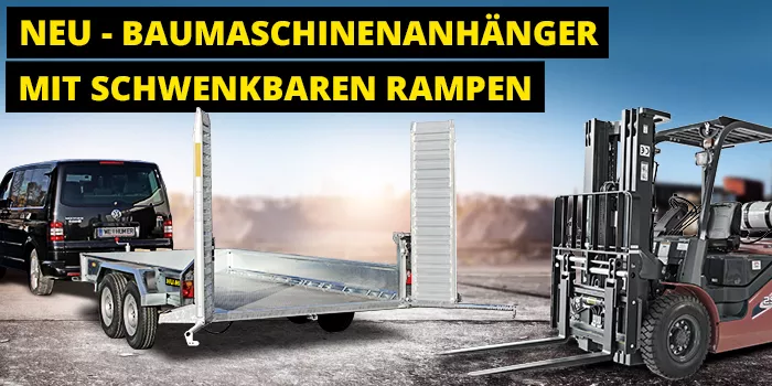 HUMER Baumaschinenanhänger Typ ABU jetzt mit seitlich schwenkbaren Rampen!