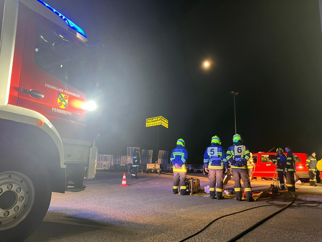 FF Fernreith übt bei HUMER für das Technische Hilfeleistungsabzeichen