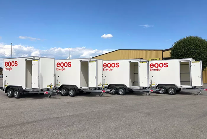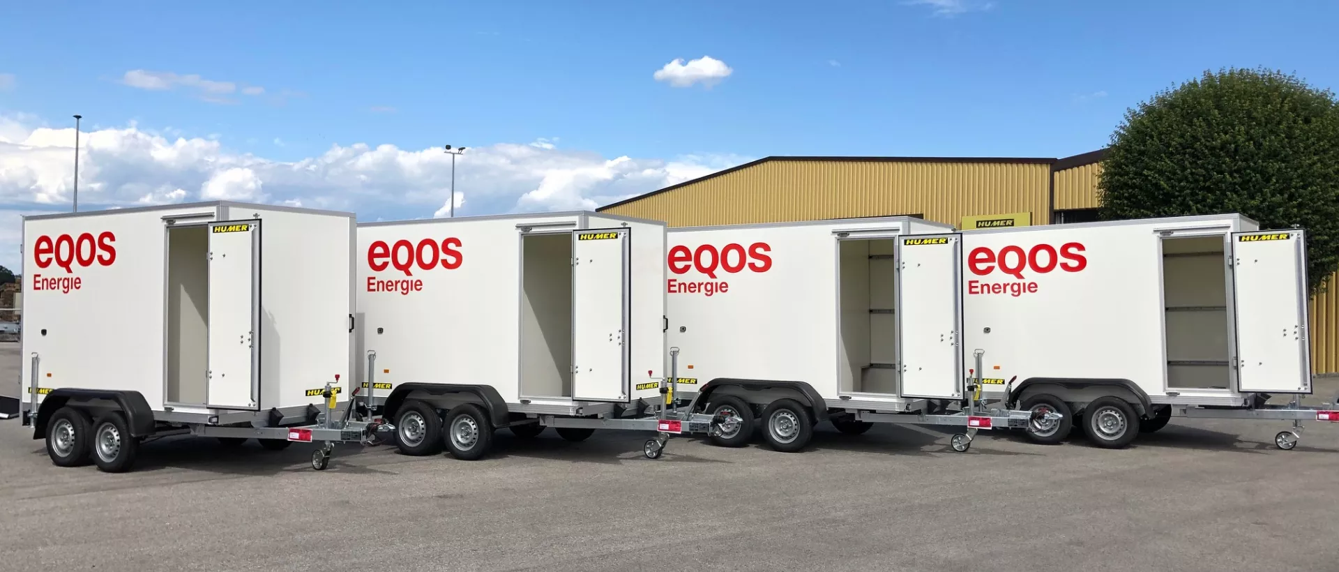 Eqos Energie ist in verschiedensten Bereichen aktiv. Um für alle Anforderungen gewappnet zu sein, setzt Eqos Energie auf 4 HUMER Kofferanhänger. Diese werden für den Werkzeugtransport verwendet. Im vorderen Bereich werden Kleinteile transportiert - anschließend ist eine Trennwand über die gesamte Breite/Höhe eingezogen worden, um eine Abtrennung zu schaffen. Im hinteren Bereich werden größere Geräte/Werkzeuge transportiert.