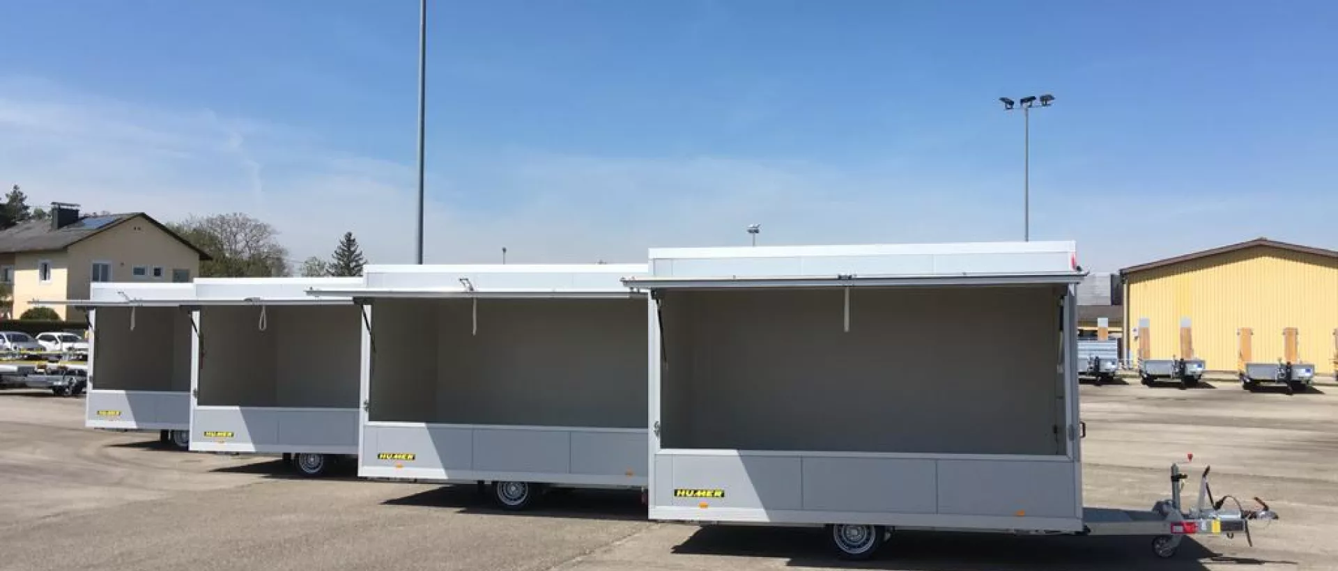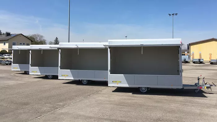 Die Firma Bohnus ist österreichweiter Ansprechpartner für Kaffeemaschinen, Zubehör, Service und individuelle Lösungen für Gastronomiebetriebe. Um auch mobil für seine Kunden präsent zu sein setzt Bohnus auf 4 wunderschöne 1.800 kg Verkaufsanhänger von HUMER mit einer Größe von 3.600 x 2.000 x 2.300 mm.