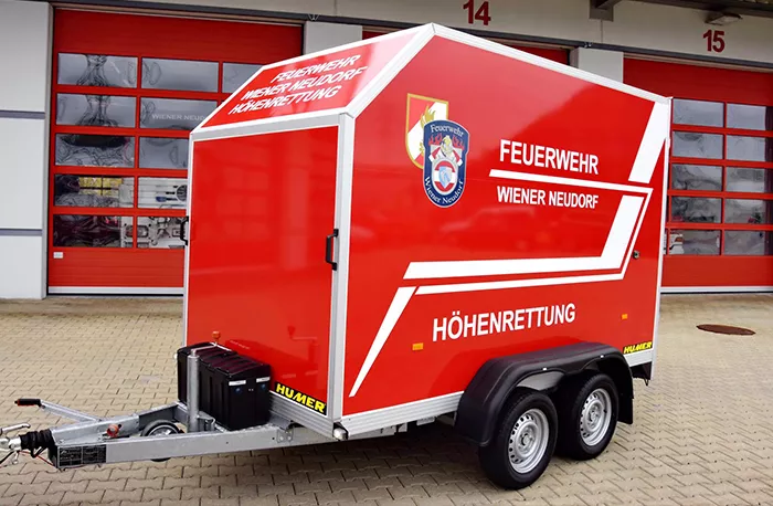 Für die FF Wiener Neudorf wurde ein auflaufgebremster Tandem-Kofferanhänger angefertigt.