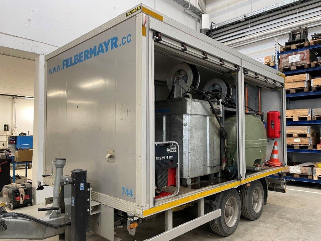 Der HUMER Tandem-Tieflader wurde mit einem Kofferaufbau ausgestattet, um den Transport verschiedenster Gerätschaften und Ausrüstungen besonders sicher und effizient zu gestalten. Diese Kombination aus robustem Tieflader und geschütztem Kofferaufbau bietet maximale Flexibilität für den Einsatz auf Baustellen, in der Industrie oder bei mobilen Einsätzen.